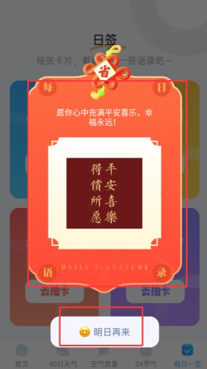 3、如下图抽签完成,用户可明天再抽。