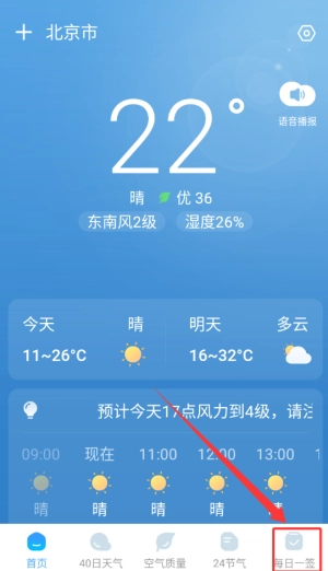 1、打开雨意天气,在右下角找到每天一签。