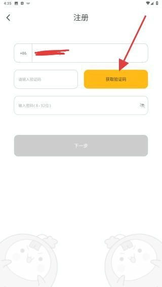 3、在注册的页面内,输入注册的手机号再点击获取验证码。