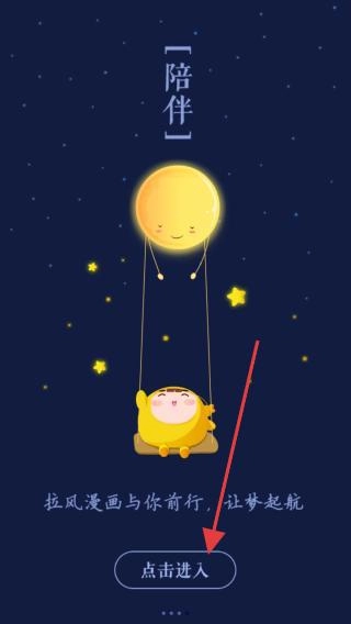 1、打开拉风漫画应用,在进入应用前点击对应的进入按钮。