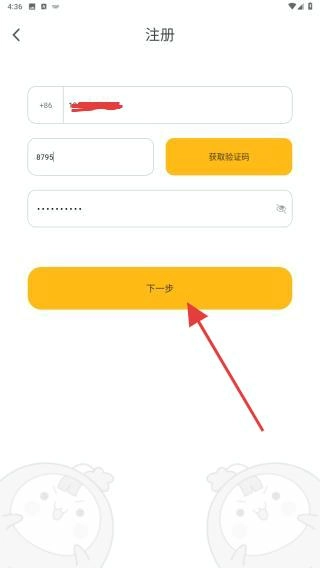 4、将收到的验证码输入进去后,再输入密码并点击下一步的按钮即可。