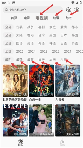 3、在电视剧分类下借助类型,地区、语言,年份和榜单等筛选选项快速定位想看的电视剧还有动漫和综艺。