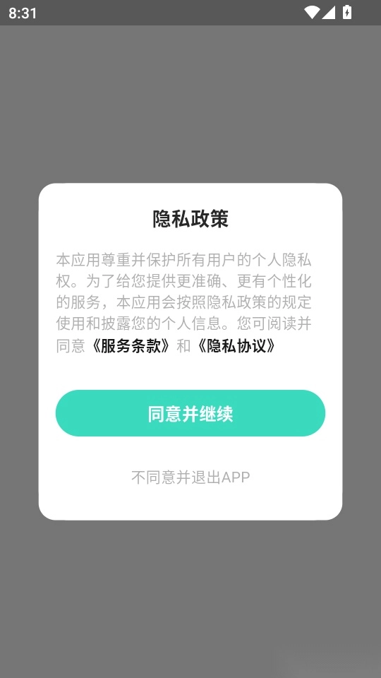 1.首先打开软件阅读“隐私政策”后,点击“同意并继续”按钮进入