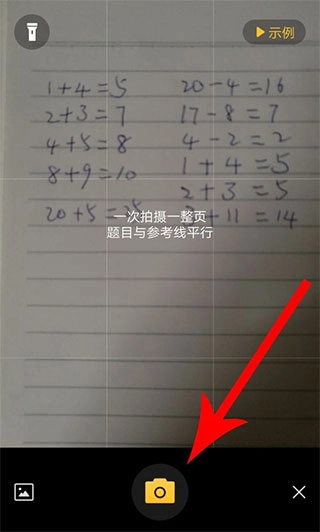 4、打开拍照界面以后对准习题,然后点击“拍摄”按钮