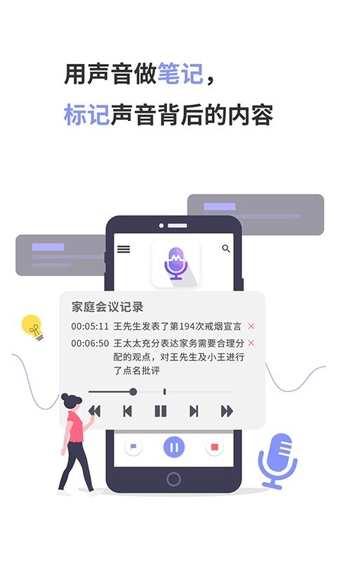 1.一键快速录音、智能文字标记、多维度分类管理、便捷随时回放