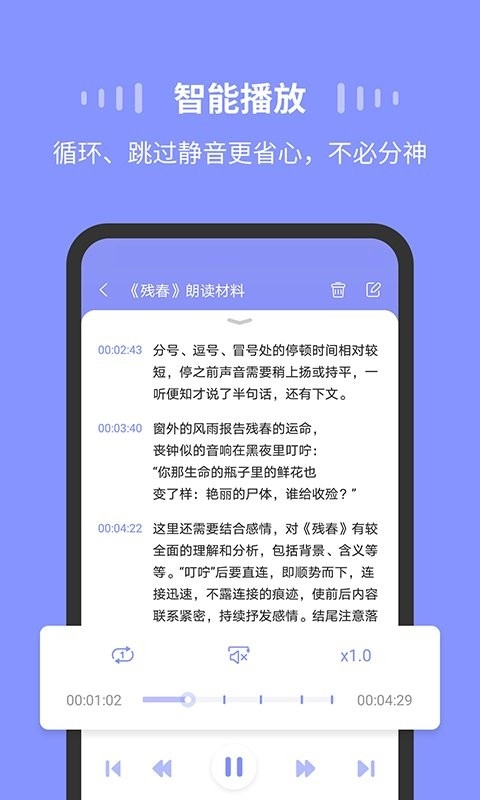 「跳过静音」播放时跳过静音,回听录音更省时
