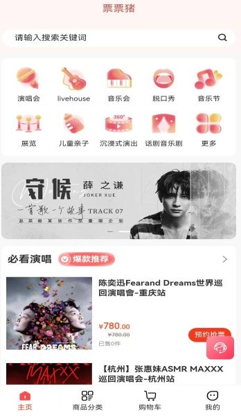 1、整合国内外知名歌手及乐队的演唱会信息,以便更高效地筛选和购票。