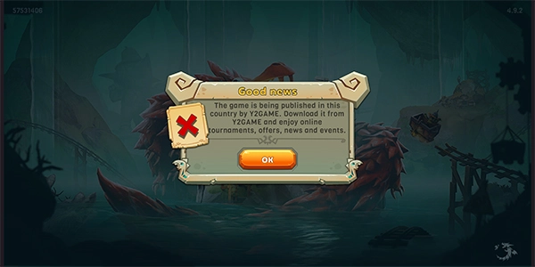 1、在本站下载的饥饿龙国际服安装完成后,进入游戏时若碰到如下界面,我们需要断开网络连接,或者使用加速器选择国外节点,之后再次尝试进入游戏。