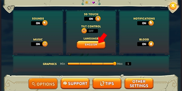 2、在设置界面中找到LANGUAGE,点击下方的语言设置按钮。