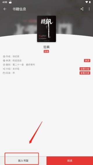3、Legado阅读将罗列出所有含狂飙的小说。