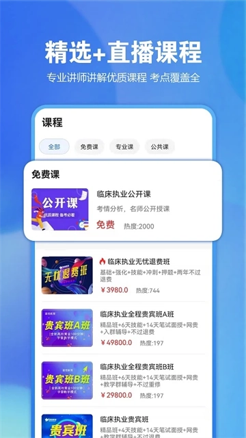 2、名师高清课、直播课,一元就能听。