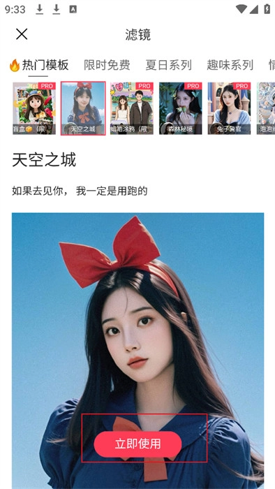 3、接下来,在首页选择一个感兴趣的模板,然后点击页面最下方的【立即使用】按钮,具体操作可参考下图;