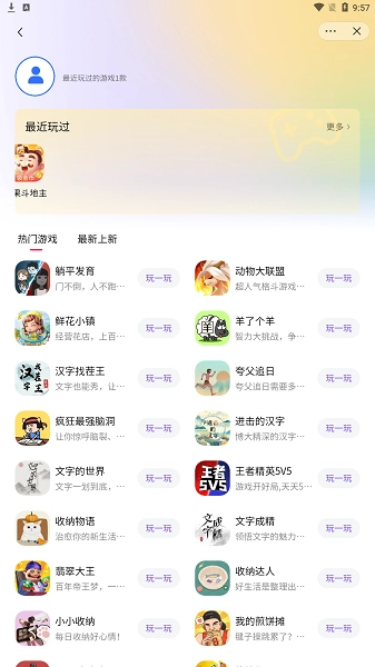1、在首页不仅有许多热门小游戏,即便玩家退出游戏后,只要打开该软件,在“最近玩过”里仍能继续游玩。