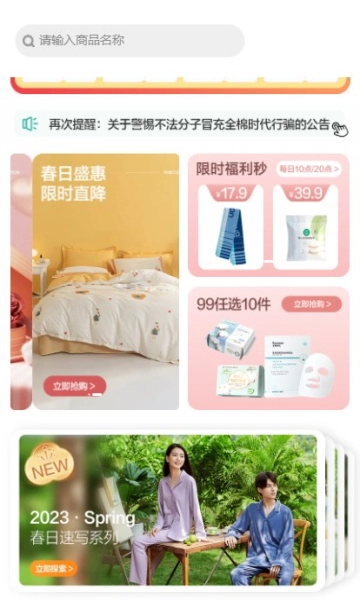 全棉时代是一个专注于以100%天然棉花为原料,打造亲肤生活护理用品的商城平台。该商城秉持“贴近生活,全棉呵护健康”的品牌核心理念,致力于为全球追求高品质生活的人群,提供更安全、更舒适、更环保的健康棉类产品。
