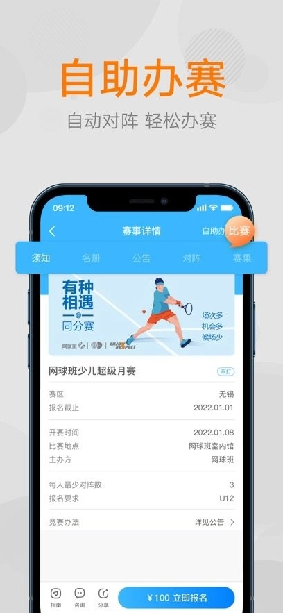 1、一键完成网球活动报名与管理:便捷报名参与各类网球活动,系统自动辅助管理,既省时又省心。