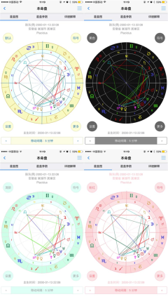 3、多种星盘配色和样式,符号版、文字版、专业版三种模式,组合成128中星盘外观;
