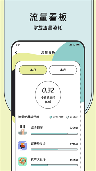 为了让用户能更轻松地了解自身流量使用状况,防止因意外超支产生不必要的花费,这款应用配备了便捷的流量管理功能,使流量管控变得简单又高效。