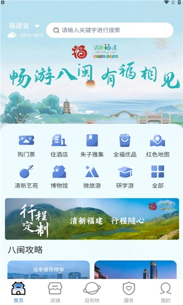畅游八闽是专为福建开发的旅游助手,前身为“一部全福游”,能助你尽情游览福建,便捷获取景点、住宿、美食、电商等各类旅游相关服务,还可帮你规划行程路线,有效节省出行费用。