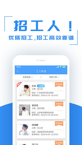 4、工人在线找活,如果自己是一位建筑工人的话则可以在这里寻找项目招工的信息;