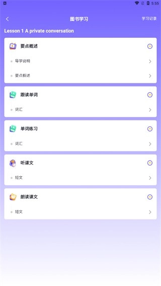 3、完成练习后,可自行开展课文点读跟读、模拟测试、随身听等学习活动。