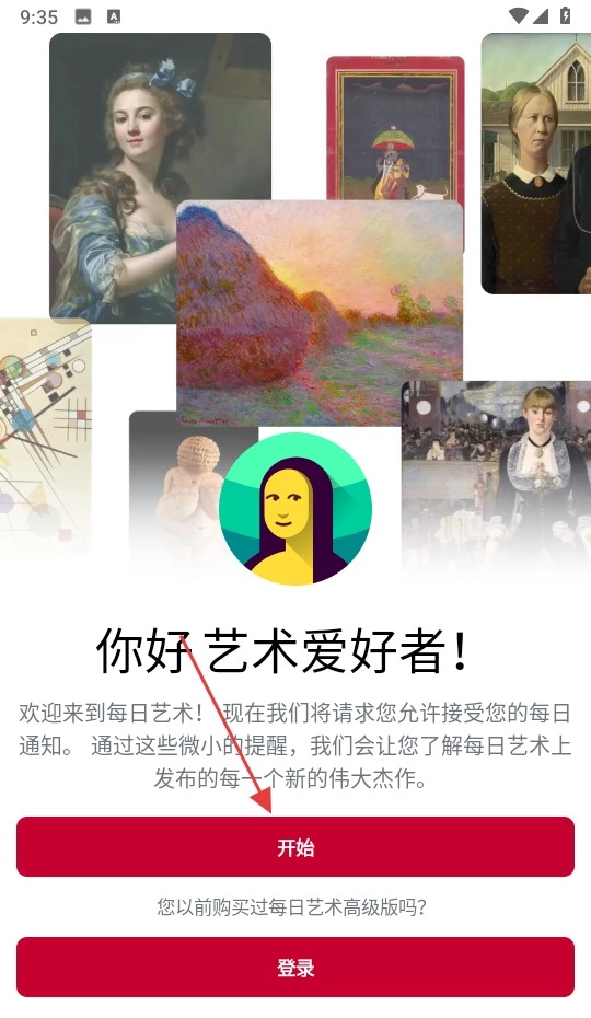 1、点击【开始】按钮,即可开启每日的艺术体验之旅。
