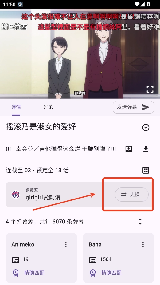 1、在番剧播放页面点击“更换播放源”按钮,即可进入新数据源的选择界面。