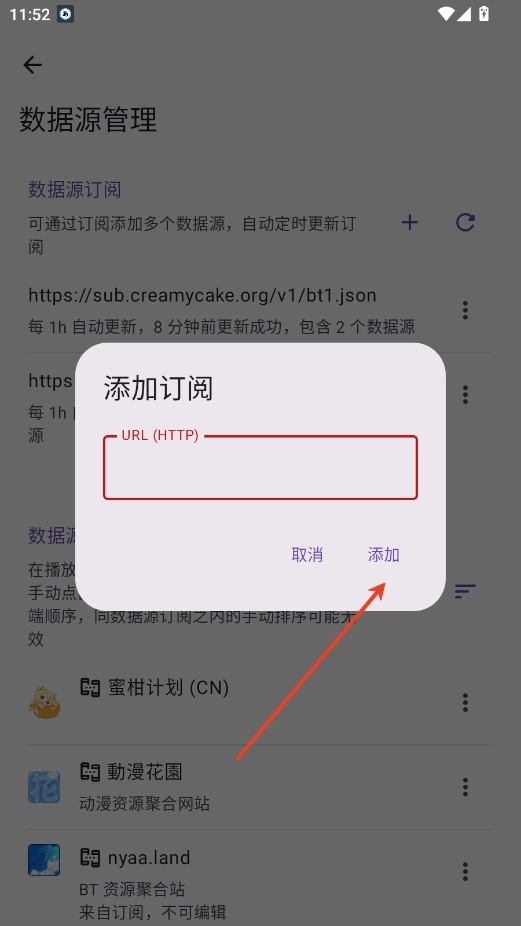 4、输入所拥有的数据源地址,然后点击“添加”按钮即可成功添加。