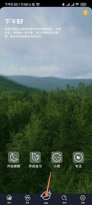 1. 我们要在首页底部的导航栏里点击【睡眠】按钮。