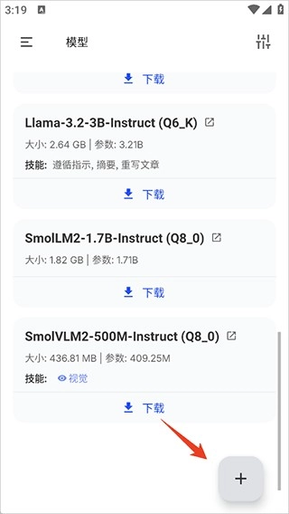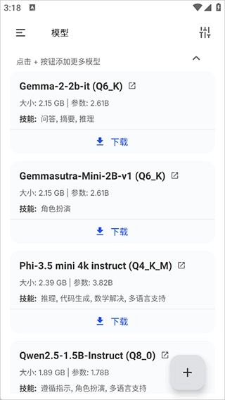 3、其它ai大模型,比如DeepSeek的可以点击右下角的添加按钮,将手机里好的模型加载进来即可