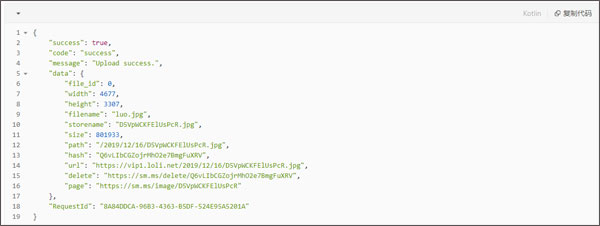 表示接口上传完成后,如果根据 json 的结构去获取图片的 url。
