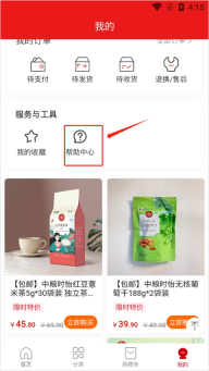 1、点击“我的小买”进入中粮我买网的个人信息界面,在功能栏目里找到“帮助中心”功能并点击进入。