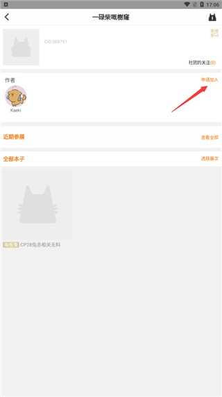 4、进入软件后可以加入社团,点击右参加社团右侧按钮。