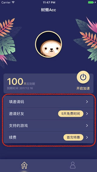 1、进入树懒Acc首页,点击“邀请好友”;