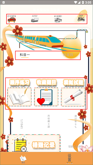 1、启动驾驶证一考通软件,先选定你学习的车型,接着选择你需参加考试的科目,最后在题库顺序练题和模拟试题考试中选择其一;