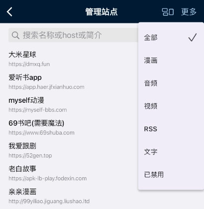 2、在管理站点多样的选择中找到自己想要换源的选项,点击进入换源编辑页面。