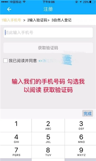 5、输入号,勾选同意条款,获取验证码。