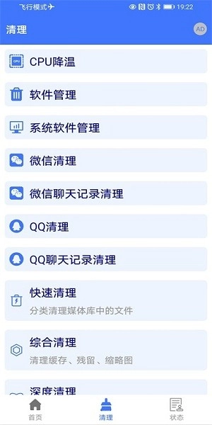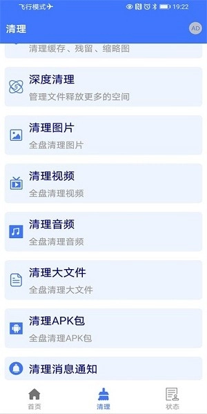 2、深度清理功能涵盖:微信与QQ专项清理,媒体库清理,缓存、残留文件及缩略图清理;支持对图片、视频、音频、大文件、APK包的清理与打开操作,同时可清理通知。