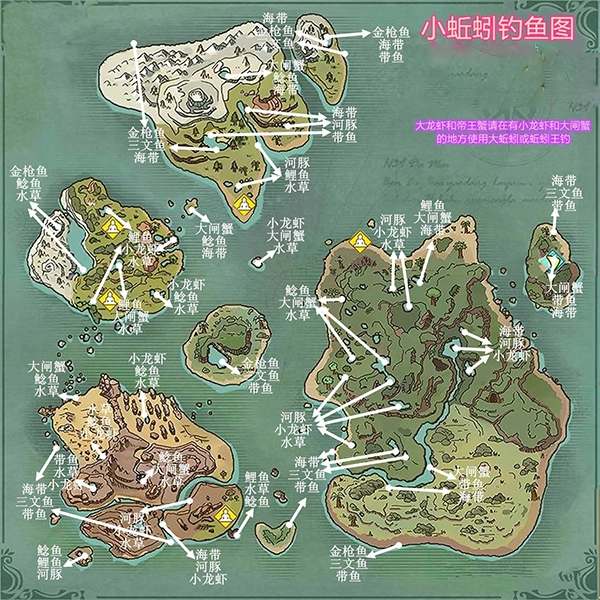 钓不到心仪的鱼?别担心,这份水产分布图马上给你安排上!还犹豫什么,想钓啥就钓啥,赶紧行动起来吧~我也要去钓鱼啦(*^ω^*)不过等等,可别忘了带上篝火哦,不然夜里的小鬼可不会对你手下留情的!
