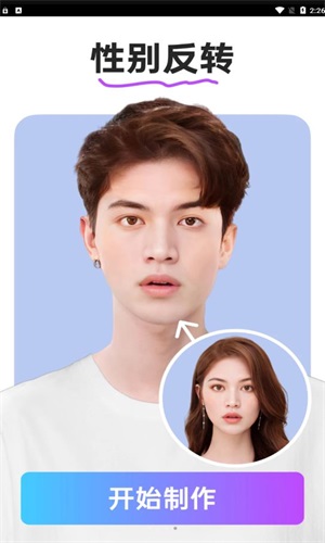 2. 软件支持直接进行性别反转操作,不管是想把男性形象转为女性,还是将女性形象转为男性,都能实现流畅转换。