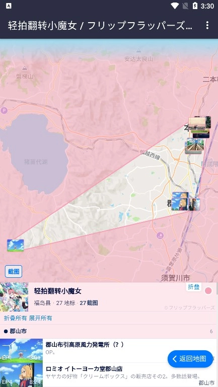 这款应用配备了详尽的地图导航功能,能够精准定位动画场景在现实世界里的对应地点。