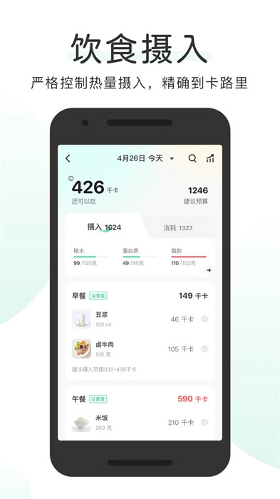 可以记录每日饮食与运动情况,通过计算摄入的卡路里,帮您换算出需要进行多少运动。