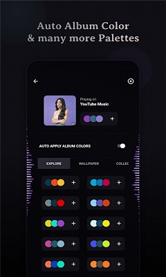 1、利用当前正在播放的音乐所生成的专辑封面、专辑插图或封面插图的颜色。