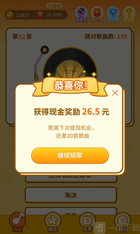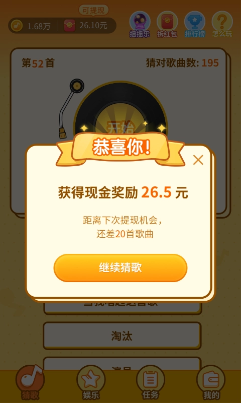 3.通过前奏来猜测对应的歌曲并回答问题,若答案正确就能获得红包,每天的挑战都十分有意思。