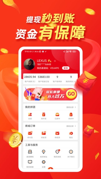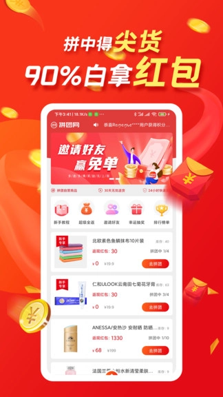 拼团网是一款专注于网上拼团购物的平台,这里提供多种拼团玩法,不同商品对应不同的拼团规则,十人即可成团。即便未能拼中也无需担心,有很大概率能获得红包奖励——拼中可直接拿货,未中则领取红包。平台汇聚海量商品,限时推出特价活动,每天还会发放各类商品优惠券,既能省钱又让人省心,甚至还有赚钱机会,快来畅快购物吧。