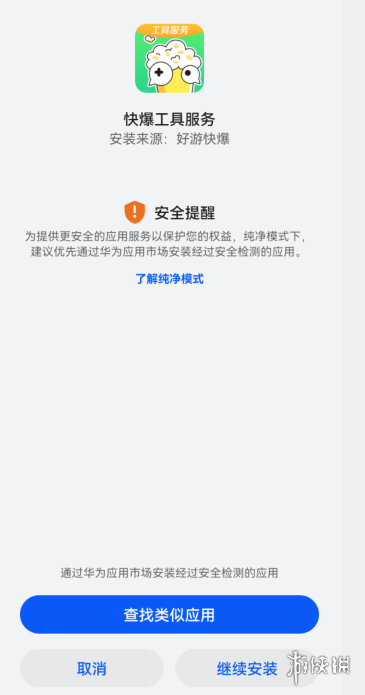 该情况是因为华为鸿蒙系统开启纯净模式后会有相关限制,仅允许从华为系统自带的应用市场下载软件,要是在快爆、浏览器、应用宝、百度助手等非华为应用市场的平台,都无法正常操作。碰到这个问题,只要关闭纯净模式,就能在快爆里正常使用啦。