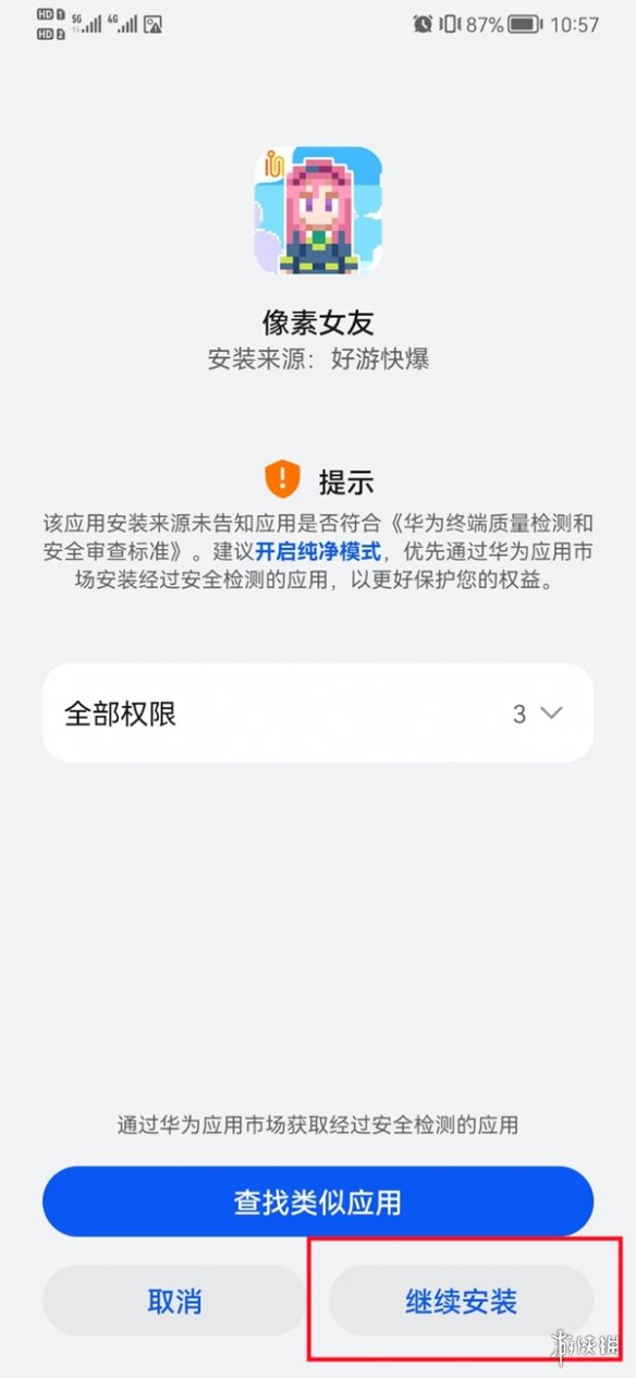②新版“纯净模式”已取消仅能从华为系统自带的应用市场内进行软件的限制,点击“继续”验证自己华为的“锁屏密码”即可~