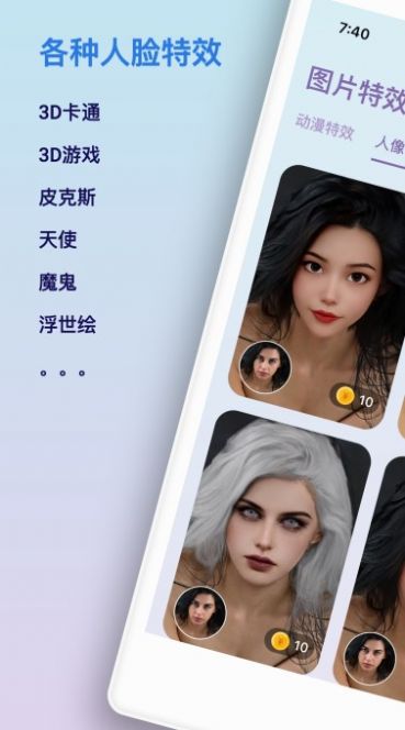 这款软件操作起来十分简单,不仅能对照片进行个性化设计,还可以生成头发效果,让你的人脸看起来更显高级;无论是多种动漫风格效果,还是丰富有趣的各类人脸特效设计,都能轻松打造出来。