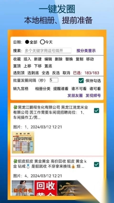 5、精准发圈设置:可自定义发圈时间与目标人群,确保内容精准触达有需求的用户。