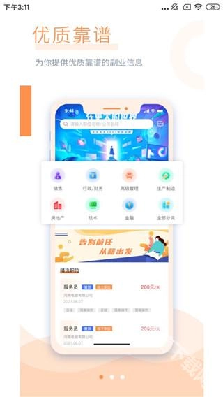 2、高薪日结算,筛选自己喜欢的高薪职业,并可日结算自己的兼职工资。